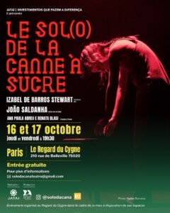 Solo da Cana est une pièce qui fictionne une voix végétale dans un corps de femme en conversation avec le public, en se concentrant sur la canne à sucre comme icône de la culture mono-agropop, dans une perspective de résistance au colonialisme et au racisme environnemental. C’est une invitation à nous repositionner dans le monde de manière plus coopérative, sintropique.